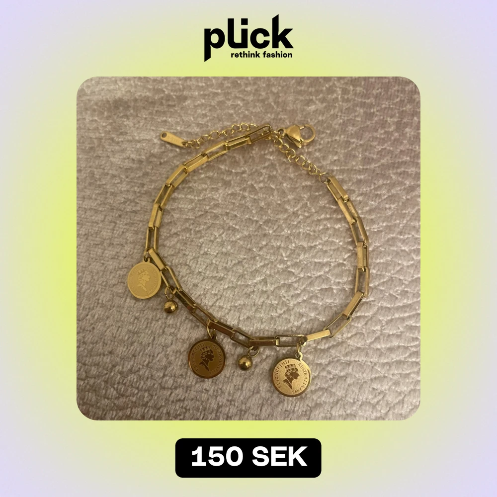 Snyggt guldarmband med tre runda berlocker och små kulor. Armbandet har en justerbar kedja och ett smidigt lås. Perfekt för att ge en elegant touch till vilken outfit som helst. Berlockerna har ett stilrent mönster som ger en unik känsla.