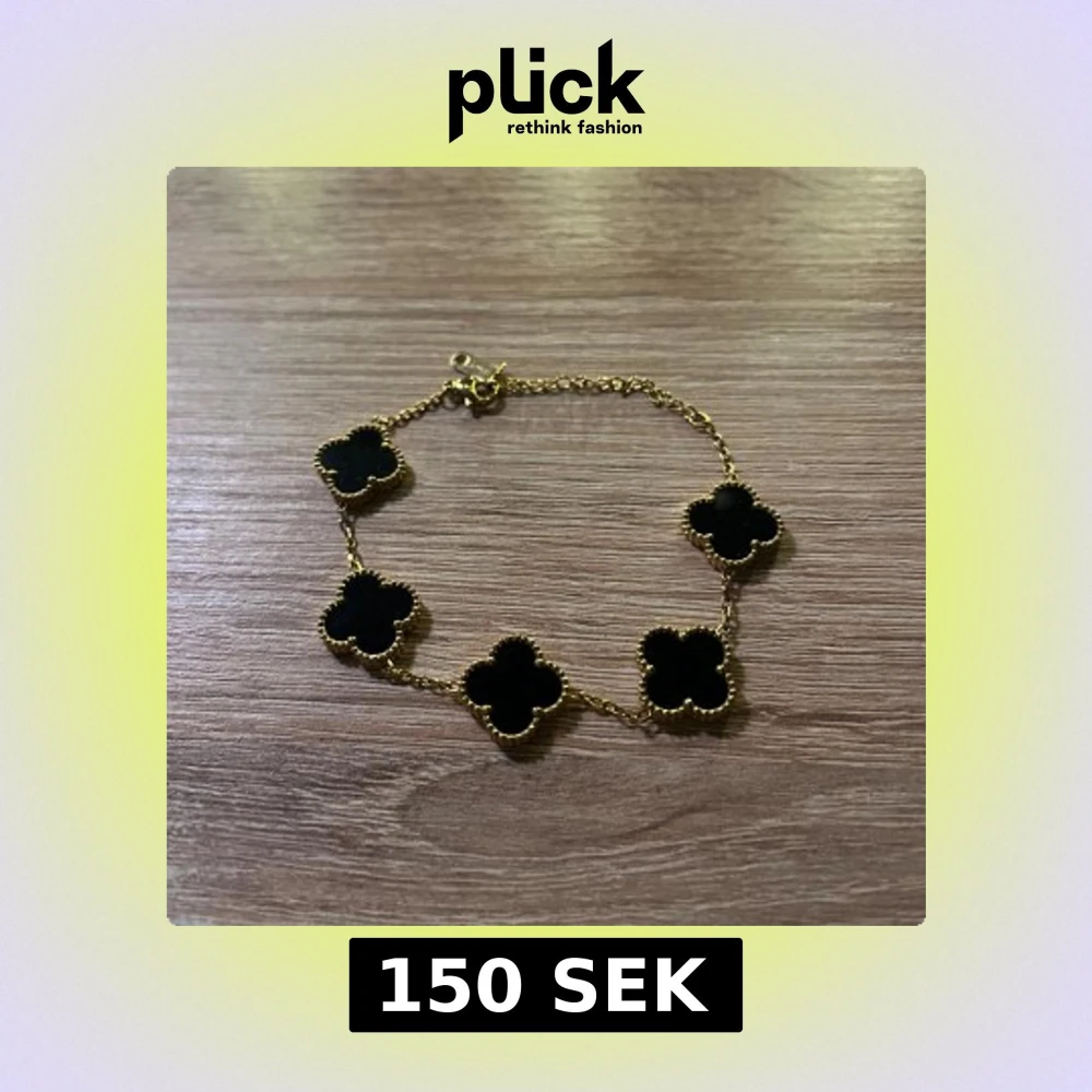 Guld kedja med svarta klöver berlocker på❤️ Van cleef inspirerad