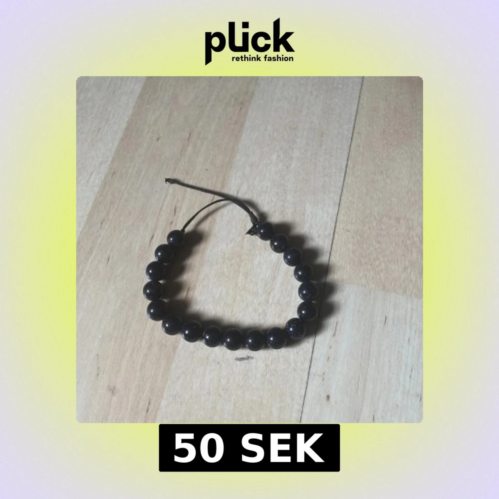 Snyggt armband med svarta glittriga pärlor på elastisk tråd och justerbar knytning. Perfekt accessoar för att ge din outfit lite extra edge. Pärlorna har en cool glansig finish som fångar ljuset på ett stilrent sätt.