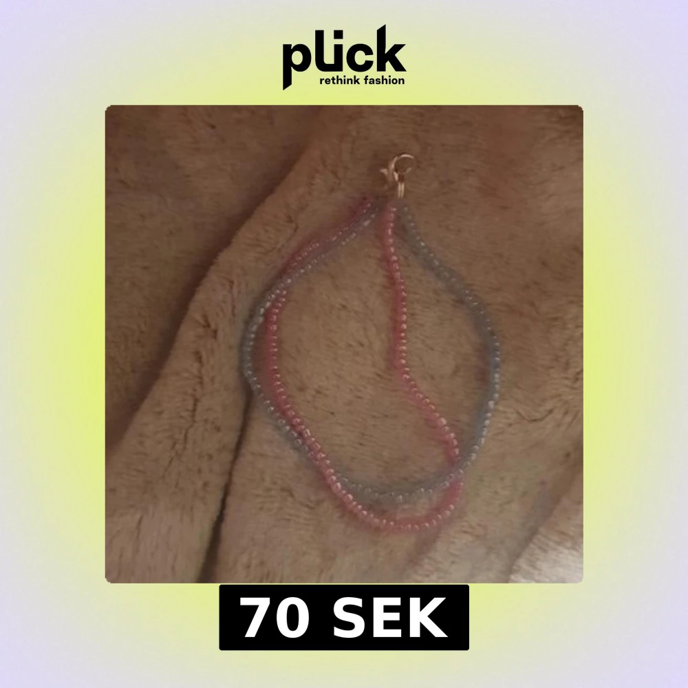 Säljer ett sött armband med små pärlor i ljusrosa och ljusblå färg. Armbandet har ett smidigt silverfärgat lås och är perfekt för dig som gillar pastell och enkel stil. Pärlorna är runda och sitter tätt på en tunn tråd, vilket ger ett stilrent och gulligt intryck.