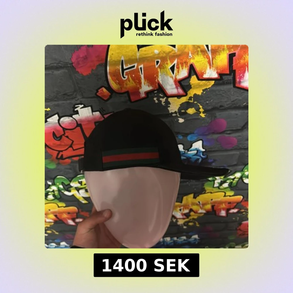 Snygg svart keps med gröna och röda ränder på sidan. Justerbar rem baktill för perfekt passform. Perfekt för en casual look Gucci keps äkta stolek s inte solbränd bra skick som ny typ billigt pris