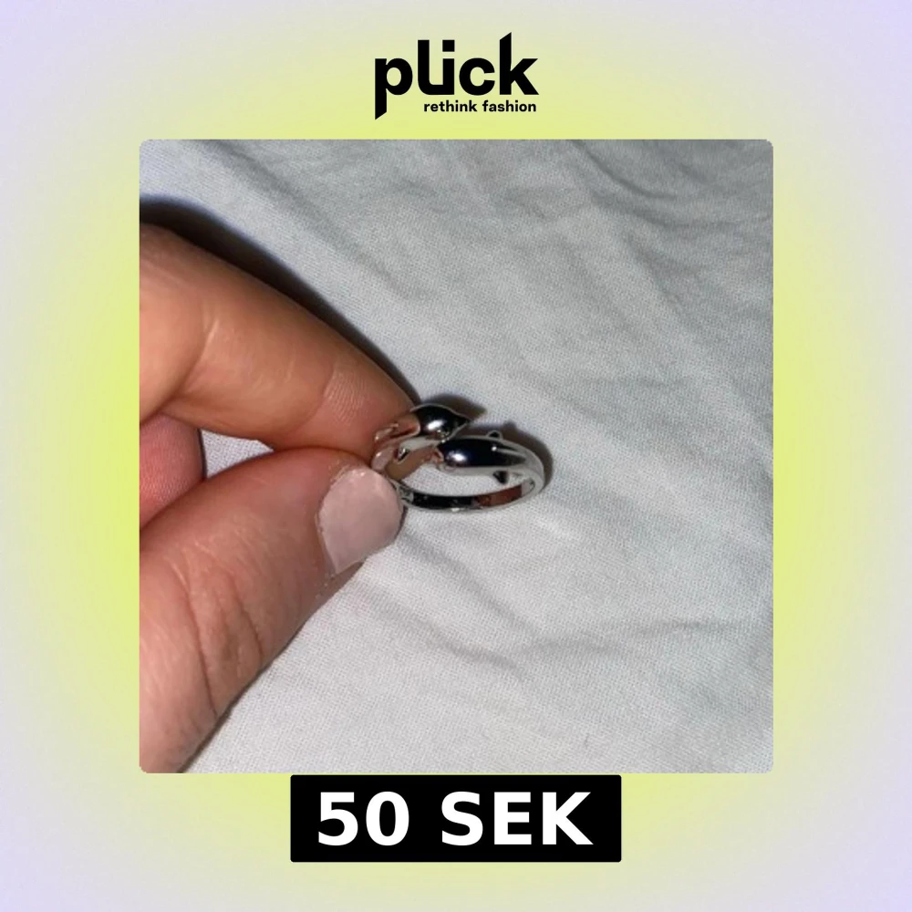 Säljer en unik silverfärgad ring med en vacker delfindesign. Ringen har en elegant och stilren look. Säljer på grund av den inte kommer till användning. Ingen aning vart den är ifrån. 💕