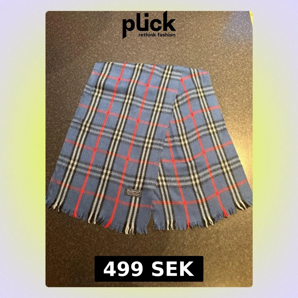 Snygg halsduk från Burberrys i klassiskt blårutigt mönster med inslag av svart, vitt och rött. Gjord i 100% lammull och har små fransar i kanterna. Perfekt accessoar för att lyfta din look med lite brittisk vibe.
