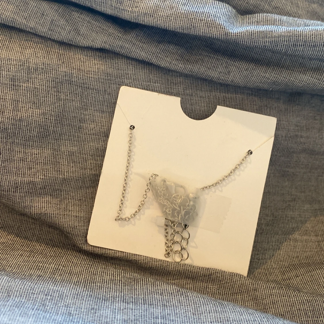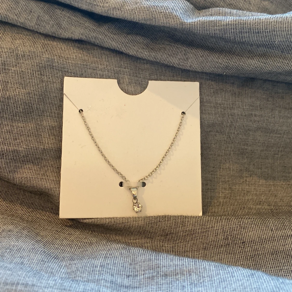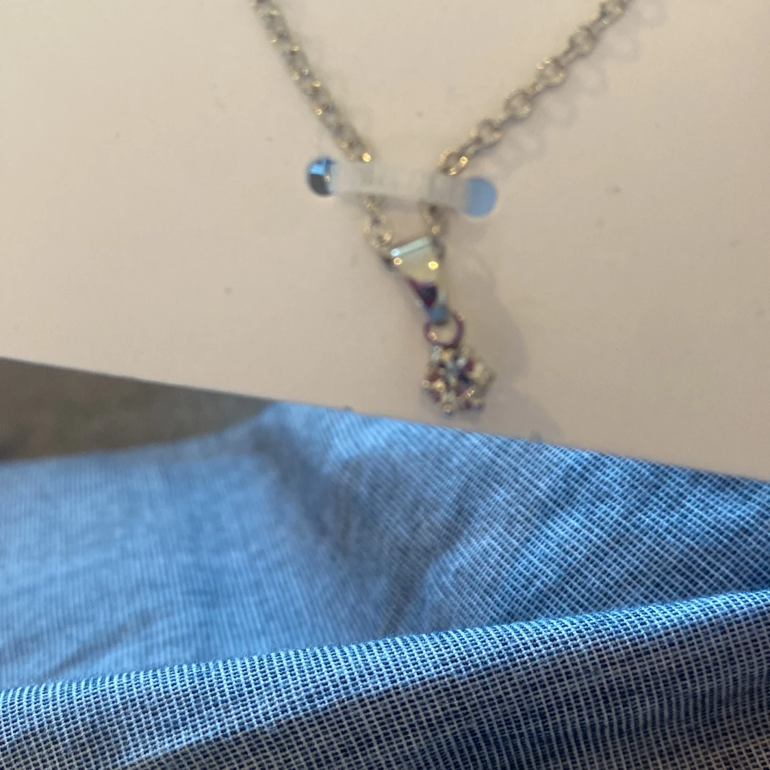 Elegant silverfärgat halsband med ett glittrande hängsmycke. Perfekt för att lägga till en touch av glamour till din outfit. Kedjan är tunn och smidig, vilket gör den bekväm att bära.