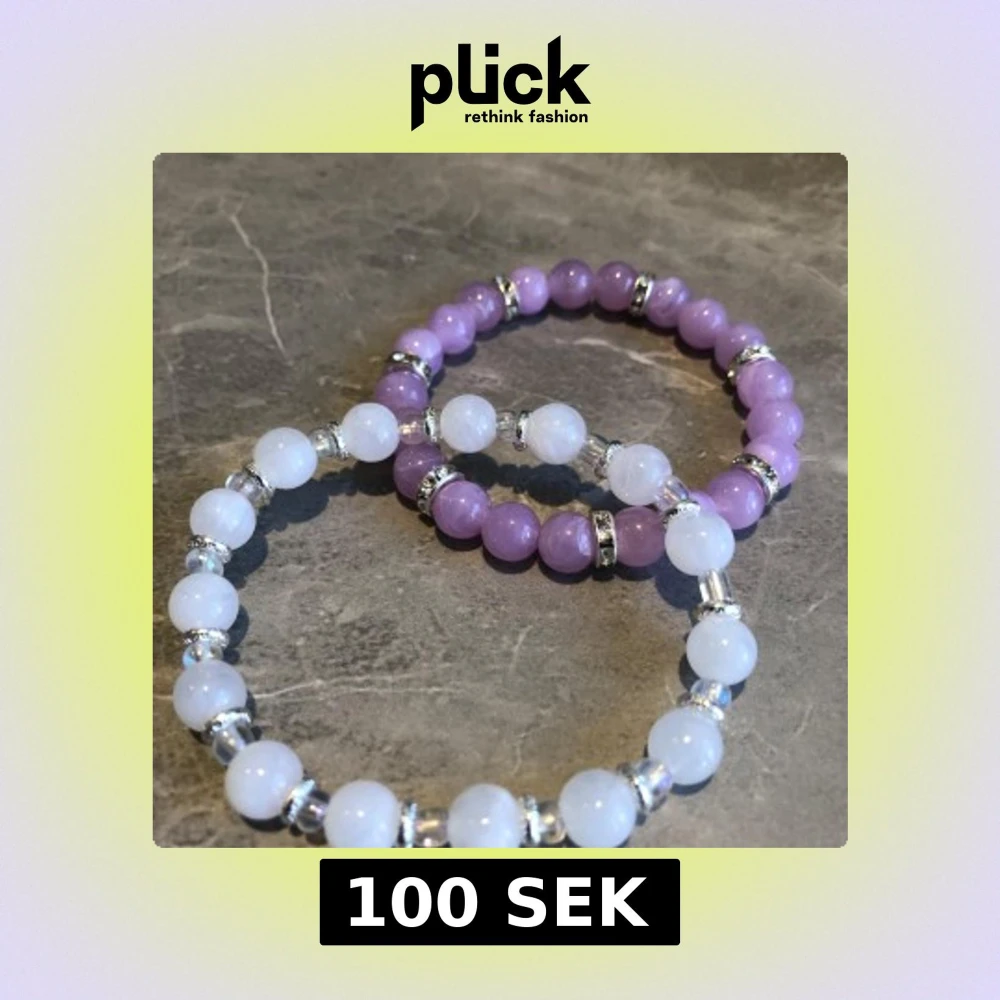 Snygga elastiska armband med pärlor i lila och vitt. Varje armband har små silverfärgade detaljer mellan pärlorna som ger en elegant touch. Perfekt för att lägga till lite färg och stil till din outfit.