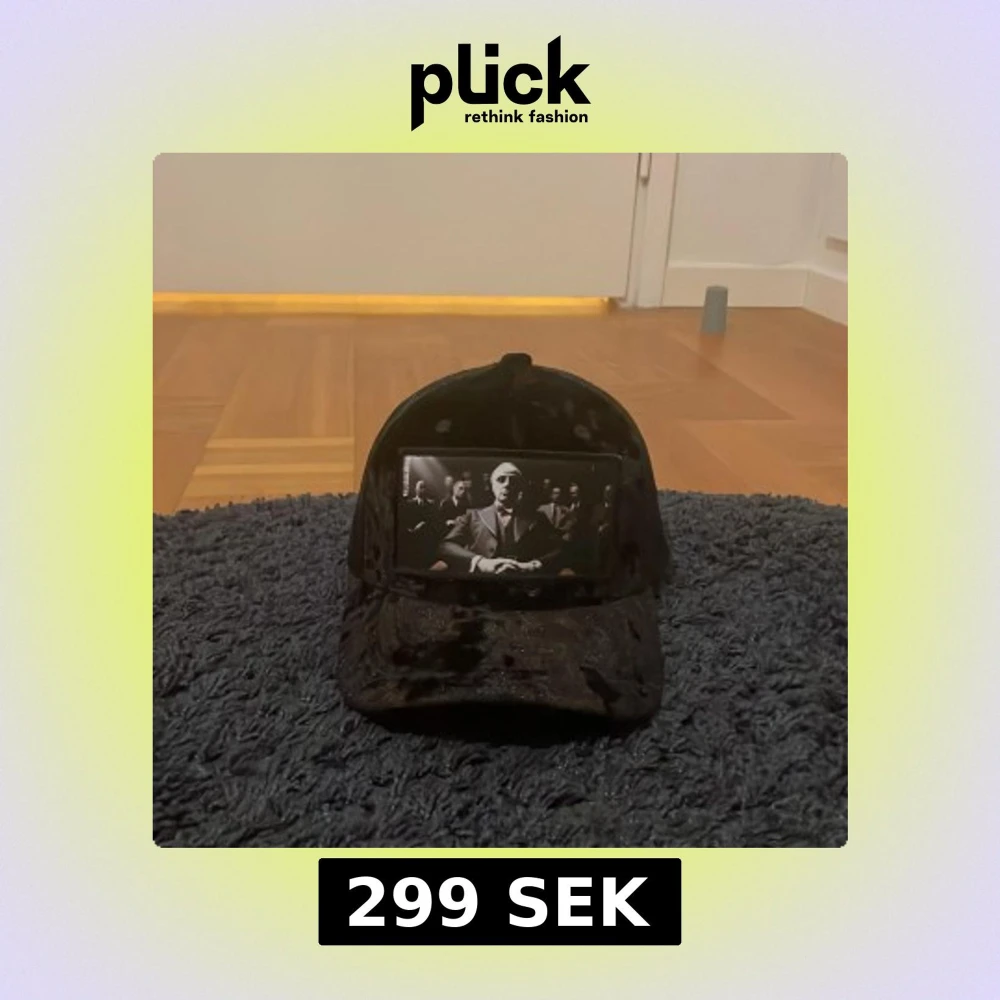 Snygg svart keps med ett tryck av en man i kostym på framsidan. Kepsen har ett nätmaterial på baksidan för bättre ventilation och en justerbar rem för perfekt passform.