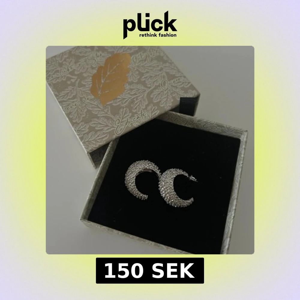 Supersnygga örhängen i form av halvmånar, täckta med glittrande stenar. De är i silverfärg och har en cool, unik design som verkligen sticker ut. Fick som present, aldrig använda