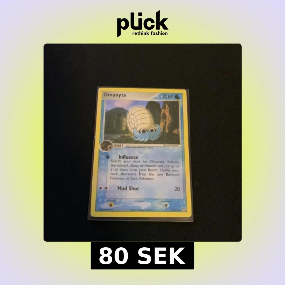 Pokémonkortet Omanyte från 2007 är perfekt för samlare och fans! Med 70 HP och unika attacker som Influence och Mud Shot är detta kort ett roligt tillskott till din Pokémon-lek. Snygg illustration och nostalgisk känsla för unga och unga vuxna. Den är pytte lite sliten med den är från 2007 så det är bara gammal.