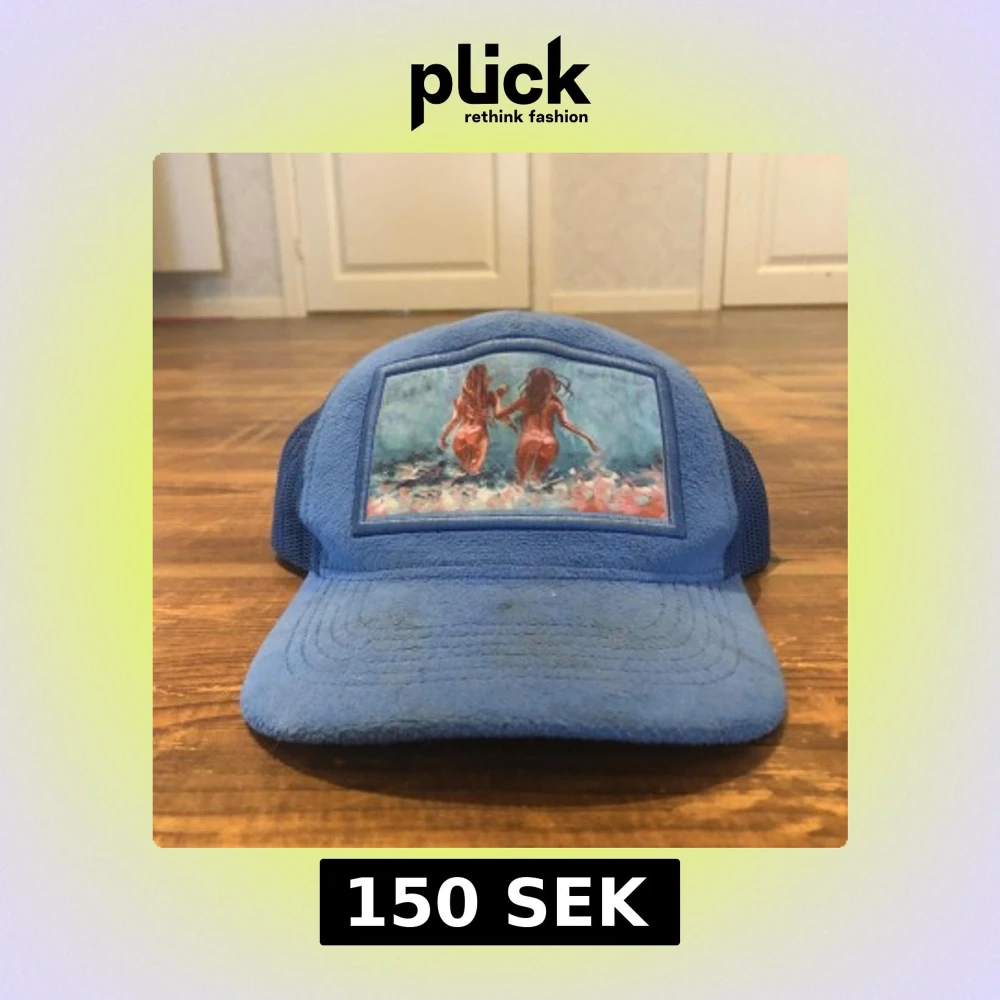 Blå keps med mesh och konstmotiv