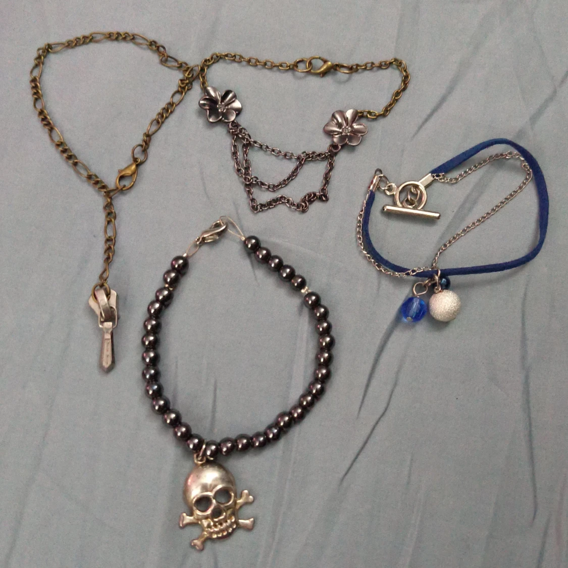 Ett set med 4 olika armband som passar perfekt att bära ihop eller isär. Armbanden är handgjorda i pärlor och kedjor med berlocker.
