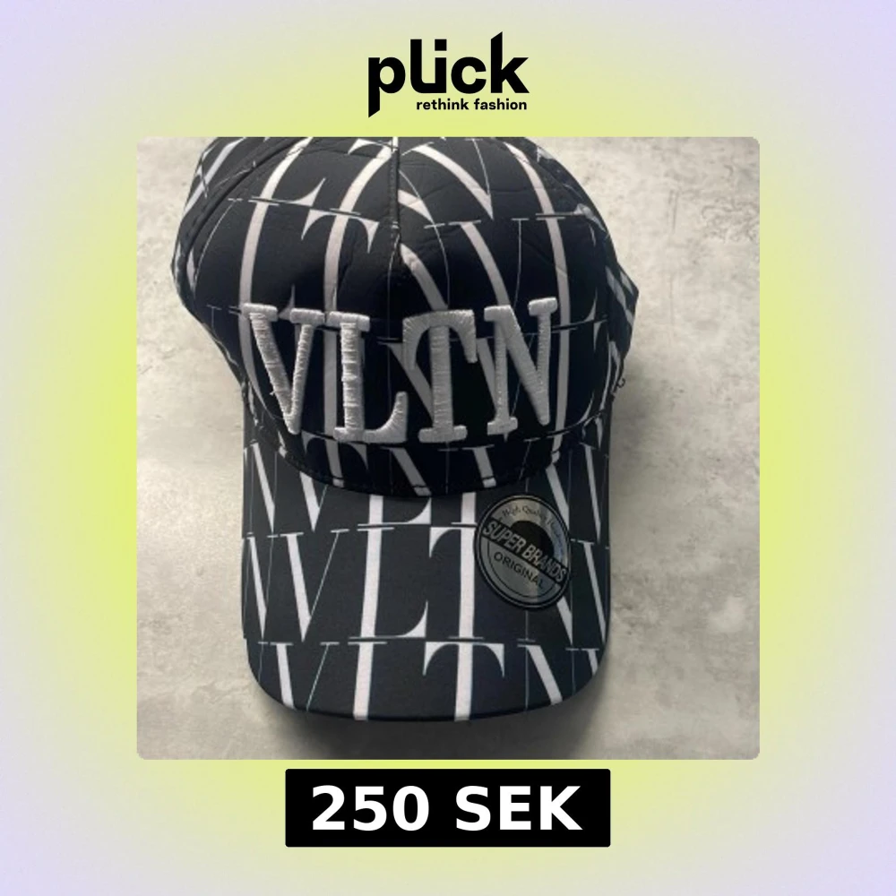 Snygg svart keps med stort vitt VLTN-brodyr framtill och all-over print i vitt. Kepsen har böjd skärm och justerbar baksida. Tillverkad i ett lätt och bekvämt syntetmaterial, perfekt för att lyfta din streetstyle.