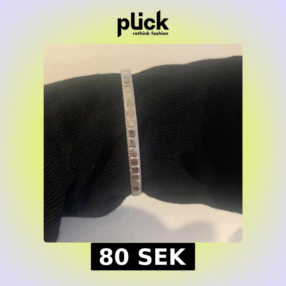 Elegant och stilrent armband i av metall i silverfärg med en fyrkantig mönsterdesign. Armbandet är öppet i ändarna vilket gör det lätt att justera för en bekväm passform. Perfekt för att lägga till en subtil glans till din outfit.