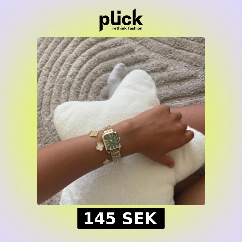 Snygg klocka med rektangulärt guldigt armband i metall och en grön urtavla. Klockan har stilrena guldiga visare och index, samt en klassisk länkdesign. Perfekt accessoar för att lyfta din outfit. Bandet legering, ej vattentätt, justerbar