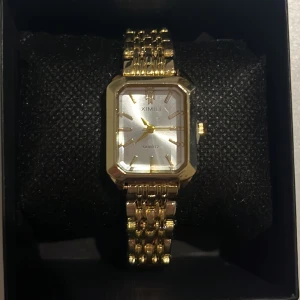 Elegant guldfärgad klocka från Ximili med rektangulär urtavla och kvartsverk. Klockan har en stilren design med guldfärgad länkarmband och tydliga markeringar på urtavlan. Perfekt för att ge en touch av lyx till din stil.