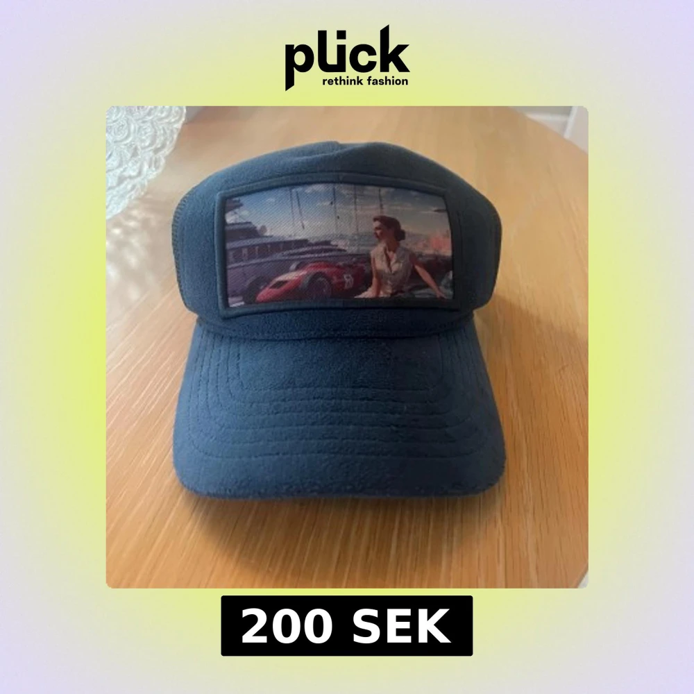 Snygg mörkblå keps från Revenite med mesh på baksidan och justerbar snapback. Framsidan har ett tryckt motiv med bil och kvinna, vilket ger en unik vibe. Framsidan är i mjukt syntetmaterial, perfekt för dig som vill sticka ut med din stil.(pris kan diskuteras i snabb köp)