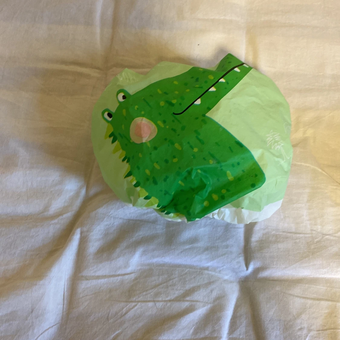 Rolig badmössa i syntetmaterial med ett stort grönt krokodilmotiv och vita detaljer. Mössan har resårkant för bra passform och är perfekt för simhallen eller stranden. Färgerna är grönt, vitt och inslag av rosa och gult. Perfekt för dig som vill sticka ut lite extra när du badar.