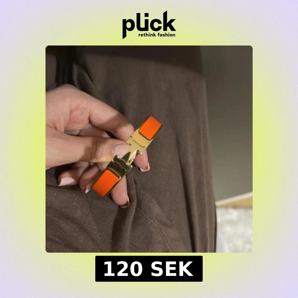 Snyggt armband i guldton med starkt orangea detaljer. Stelt och stilrent med klassisk H-formad låsning framtill. Perfekt accessoar för att ge din outfit en färgklick och exklusiv känsla.