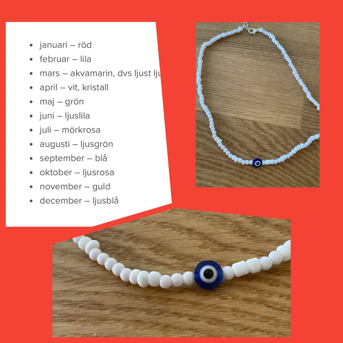 By prisförslag- armband vita pärlor din månads ögonfärg