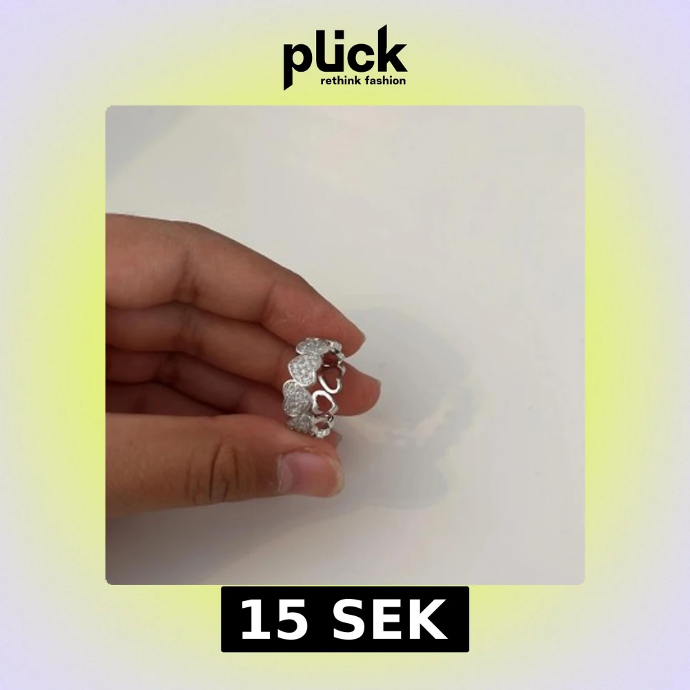 Superfin silverfärgad ring med hjärtan runt hela bandet. Vissa hjärtan är täckta av små glittrande stenar som ger extra bling. Perfekt accessoar för dig som gillar söta detaljer och vill sticka ut lite extra.