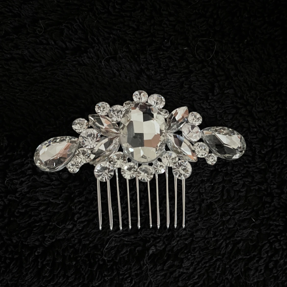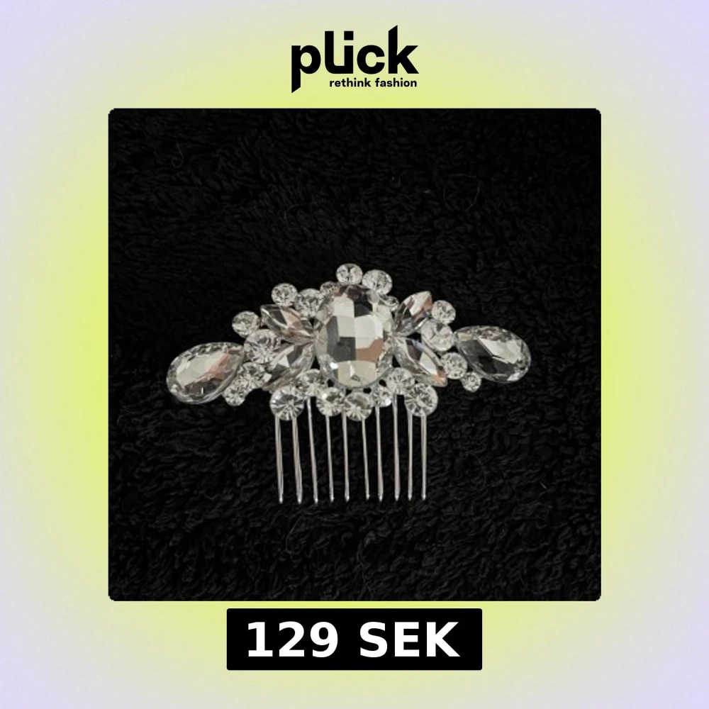 Elegant tiara/hårkam dekorerad med gnistrande strass i olika former och storlekar. Perfekt för att ge en extra touch av glamour till din frisyr. Kammen har en silverfärgad bas som ger en lyxig känsla.