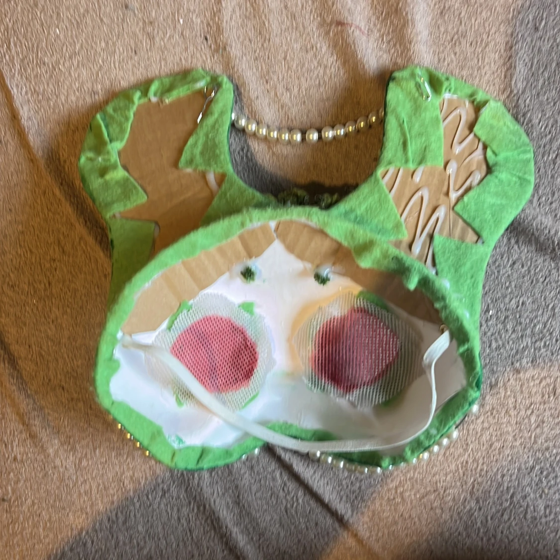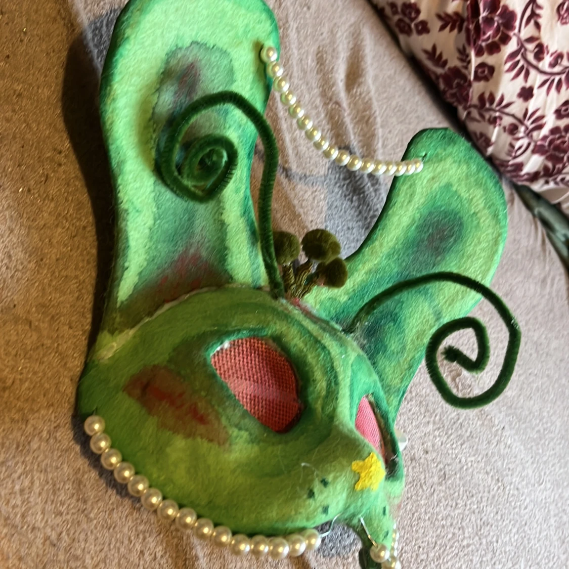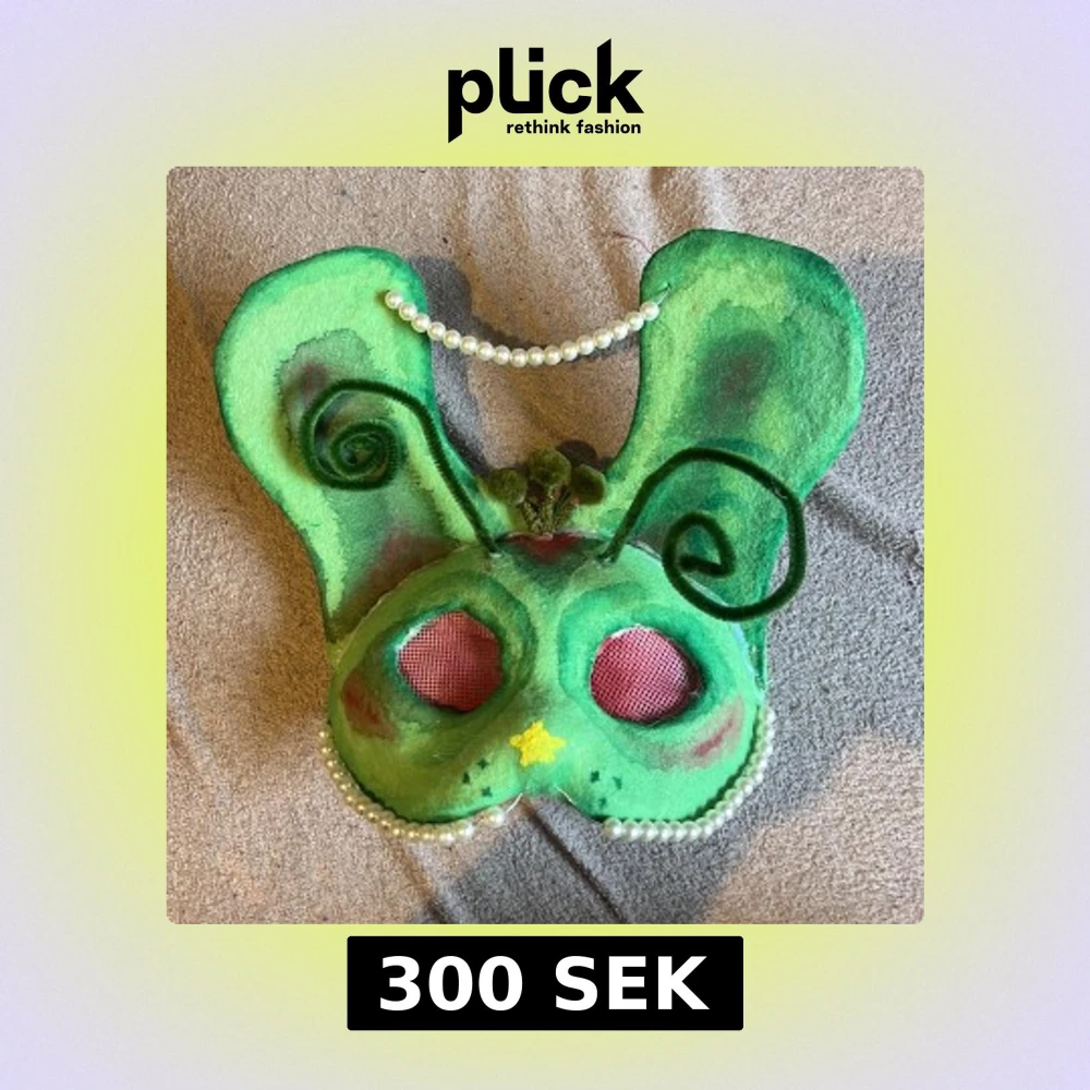 Enkel handgjord Alien mask som sitter bra på huvudet och på grund av de stora ögonen ser man mycket bra i dem. Pga av pärlorna tog denna runt 5 timmar att göra. Om du funderar över något kontakta bara mig!! Och om du vill att jag ändrar något när du köpt den eller vill prata om priset säg bara till!! ❤️