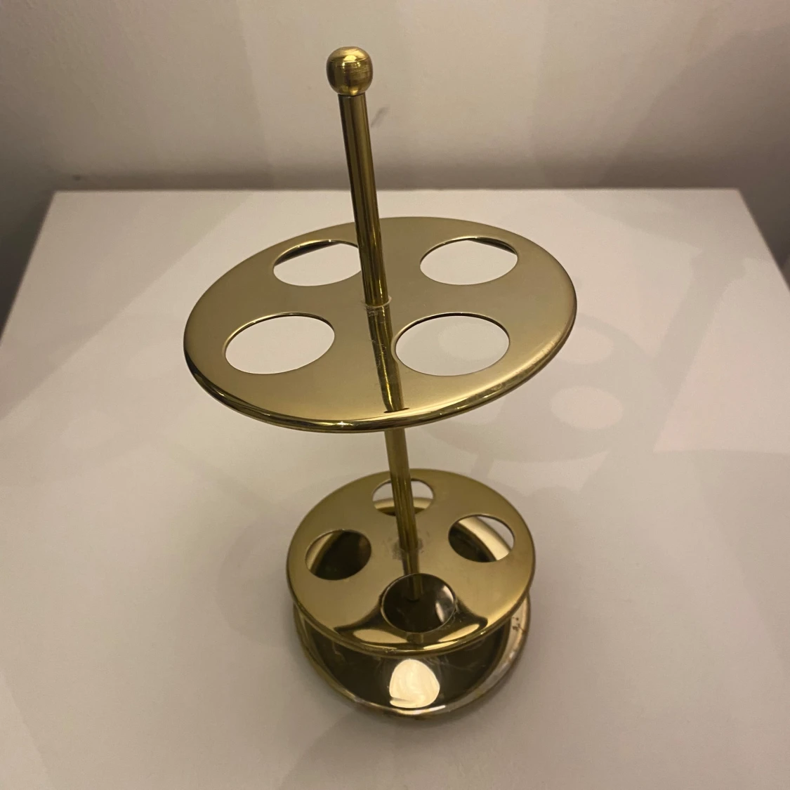 Elegant guldfärgad tandborstshållare /smyckeshållare med två nivåer och plats för flera smycken. Perfekt för att organisera och visa upp dina favoritsmycken på ett stilfullt sätt.