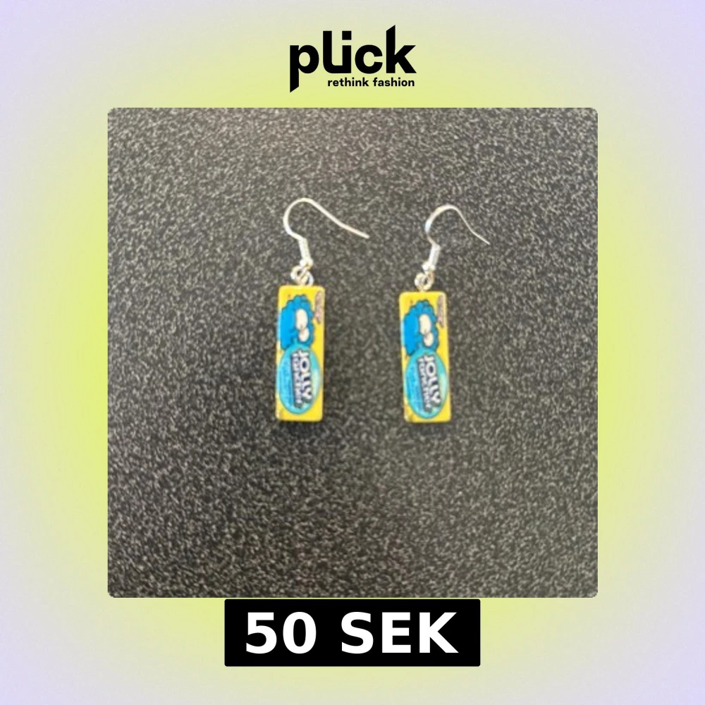 Unika örhängen med rektangulär form och färgglad retrodesign. De har en gul bas med blå och vita detaljer, vilket ger en lekfull och iögonfallande look. Perfekta för att lägga till en touch av nostalgi till din stil.