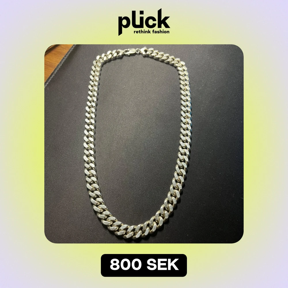 Stilig och fet cuban chain gjord av 750 silver. Rätt så bred (9mm) dock så är den 50cm lång. Brukar rengöra den med silverputs dock så har den inte tvättats på ett tag. Dm för mer info/bilder. Priset går att diskutera