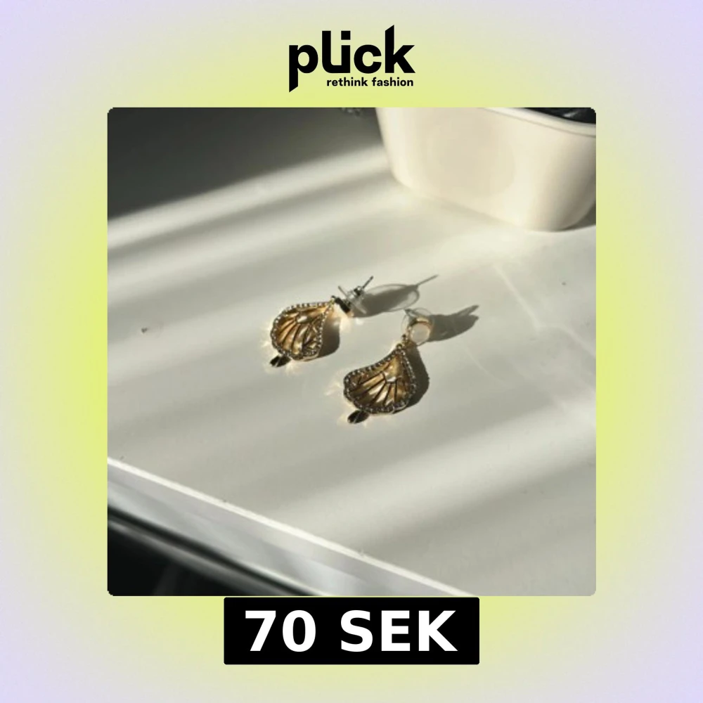 Snygga örhängen i guld med bladformad design och svarta detaljer. Kanter dekorerade med små glittrande stenar som ger extra bling. Perfekta för att lyfta din look med en unik och trendig touch.