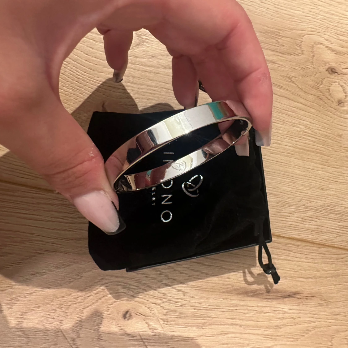 Snyggt och stilrent silverfärgat armband från Mono Jewelry. Perfekt för att ge en elegant touch till vilken outfit som helst. Armbandet kommer i en fin svart påse med dragsko. Passar både till vardags och fest! Armbandet är helt nytt. Nypris ca 4000kr