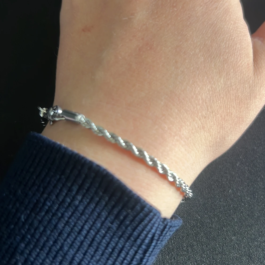 Snyggt armband i silverfärg med tvinnad design. Perfekt accessoar för att lyfta din outfit. Lätt att matcha med andra smycken och har ett smidigt lås.