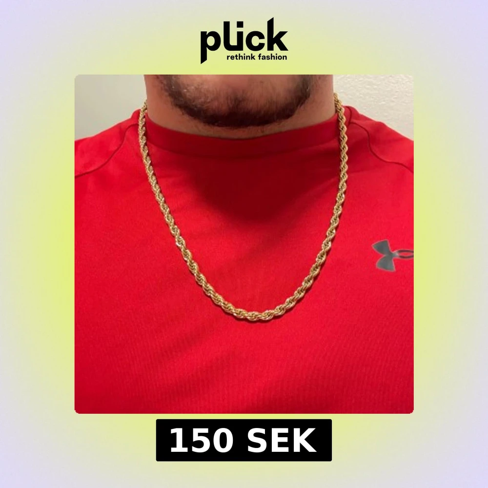 Snyggt halsband med repkedje-design i guldtonad metall. Längden är 60 cm och bredden 6-7 mm, vilket ger en rejäl och stilren look. Perfekt för dig som vill ha ett statement piece som syns. Låsningen är enkel och smidig. Passar både till t-shirt och hoodie.