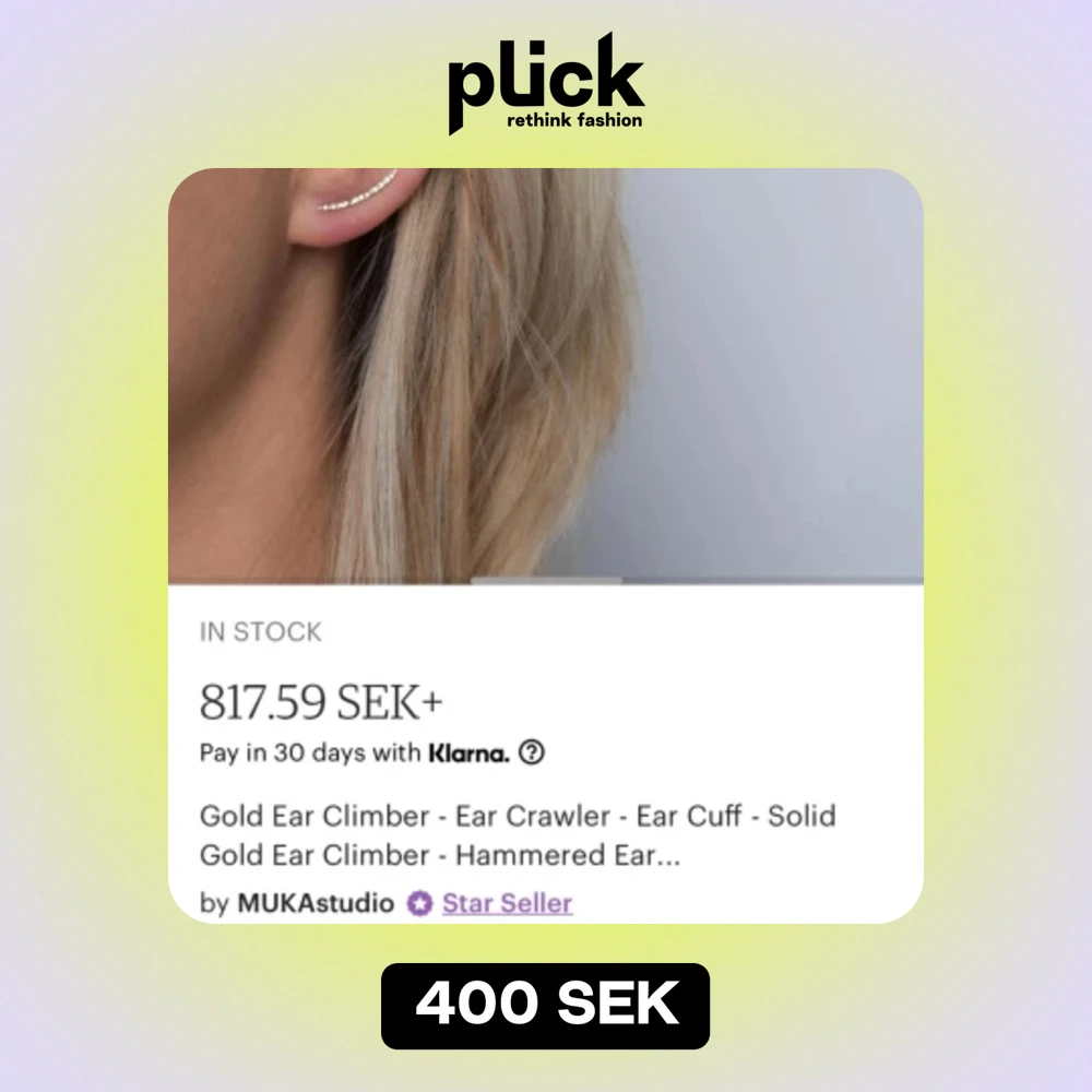 Ear climber från Muka studio. Så fin, i mycket ljus guldfärg, ser nästan ut som silver i vissa ljus. Höger öra, pris ovan var alltså för en. Passade inte mig. Endast provad (och rengjord) i orginalbox (dock kanske aningen dammig