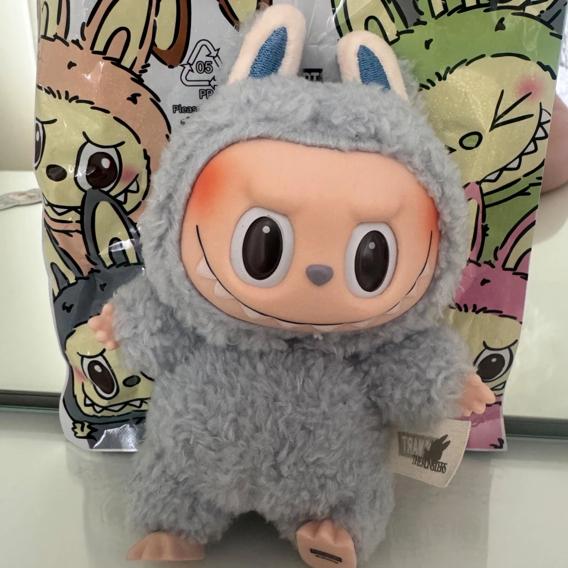 Säljer min labubu i färgen sea salt coconut. Fått som gåva, helt ny och oanvänd. Har inte lådan kvar men labubun kommer med i påsen och stickern. Kan skickas omgående 😊