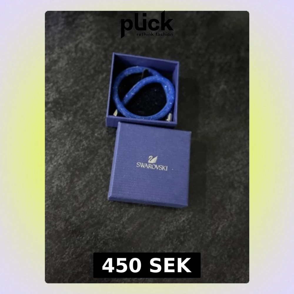 Säljer ett snyggt blått armband från Swarovski med glittrande detaljer och silverfärgat magnetlås. Armbandet har en rund form och är täckt av ett nätliknande material med små paljetter som ger extra bling. Perfekt accessoar för att lyfta din outfit.