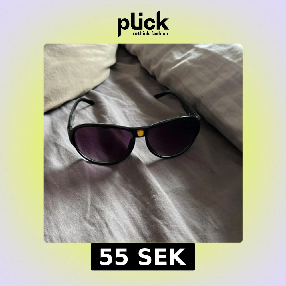 Snygga svarta solglasögon med en unik gul detalj på framsidan. Perfekta för soliga dagar och ger en cool look. De har en klassisk form och mörka glas.