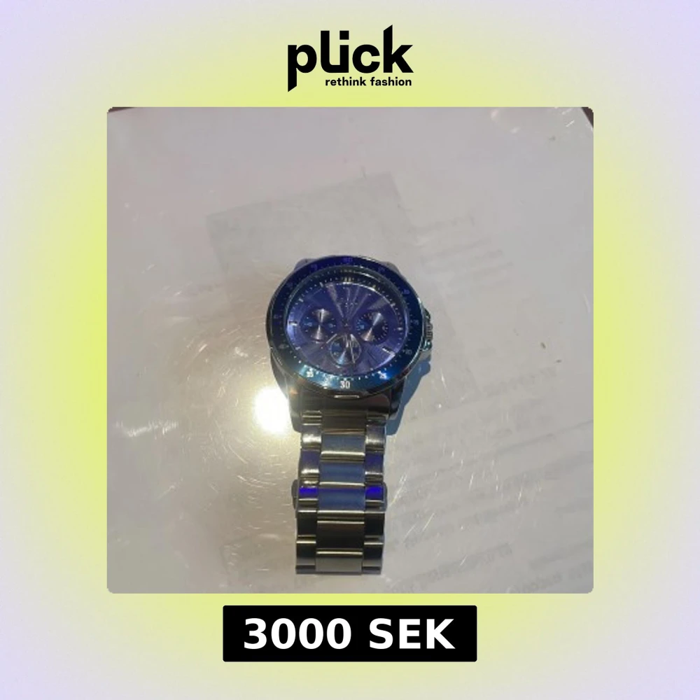 Snygg klocka med blå urtavla och matchande blå bezel. Klockan har tre mindre urtavlor och ett robust metallarmband. Perfekt för en stilren look. Den är rostfri och farten tät