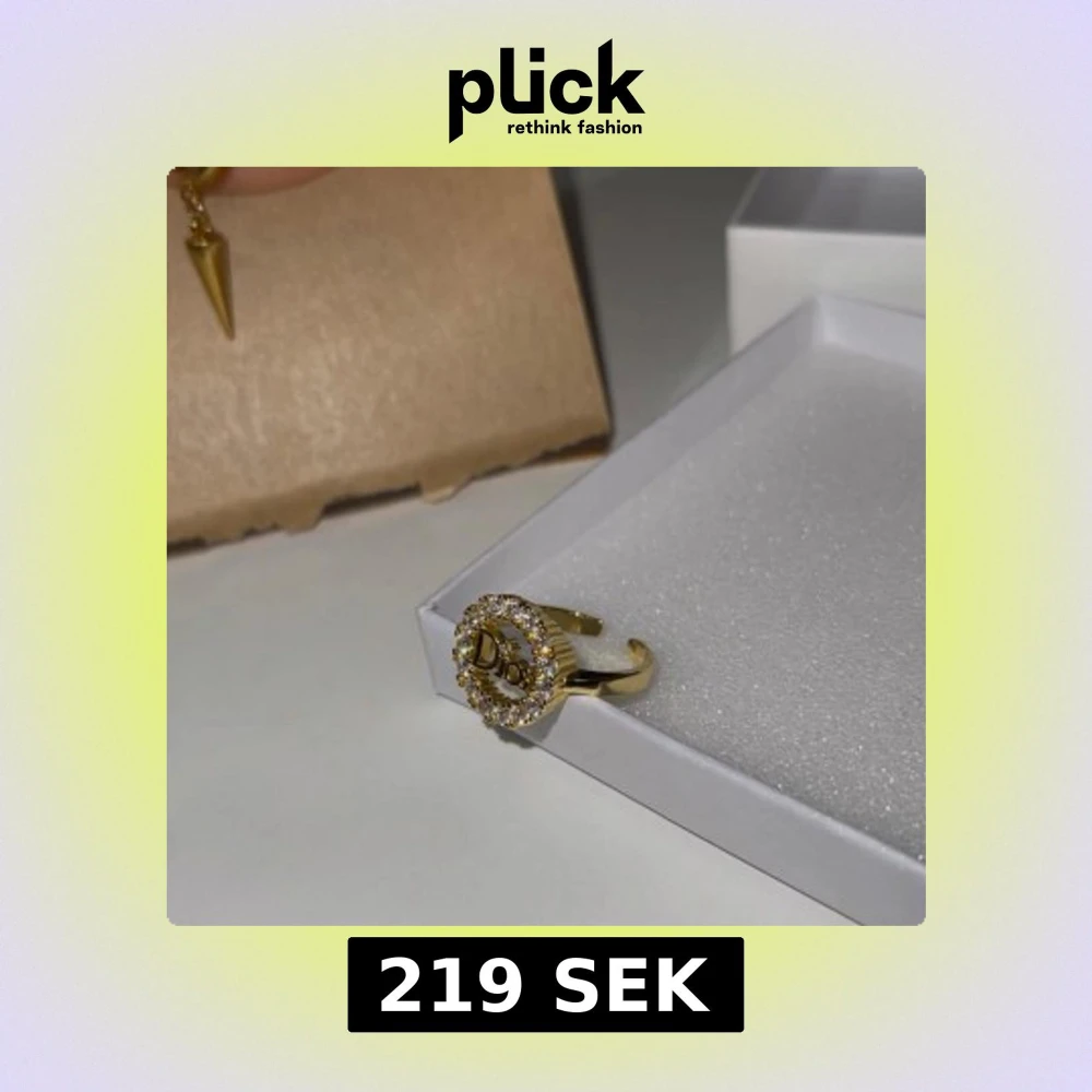 Elegant guldfärgad ring med en cirkulär design prydd med glittrande strass. Ringen har en justerbar öppning för att passa olika storlekar. Helt oanvänd, köpt utomlands. Materialet är jag inte säker på. • Låda medföljer ej, dock paketeras smyckena säkert för leverans