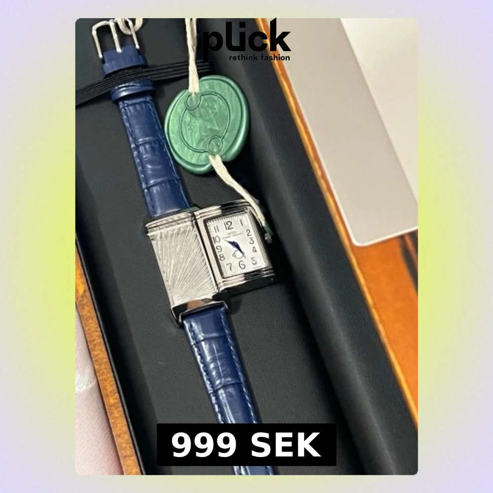 Säljes för endast 999 kr d’Verso – Specifikationer Case Dimensions: 21mm × 36mm (10mm thick) Case Material: Zinc Alloy Crystal: Hardened Mineral Glass Movement: Japanese Quartz – Precise & Reliable Strap: Marine Blue Leather-Style Strap (14 cm) Water Resistance: 3 ATM Beskrivning Elegant Dual-Faced Design, One Side Dial Compact and Graceful Case Shape Refined Brushed & Polished Finishing Levereras i originalfodral "Signature C