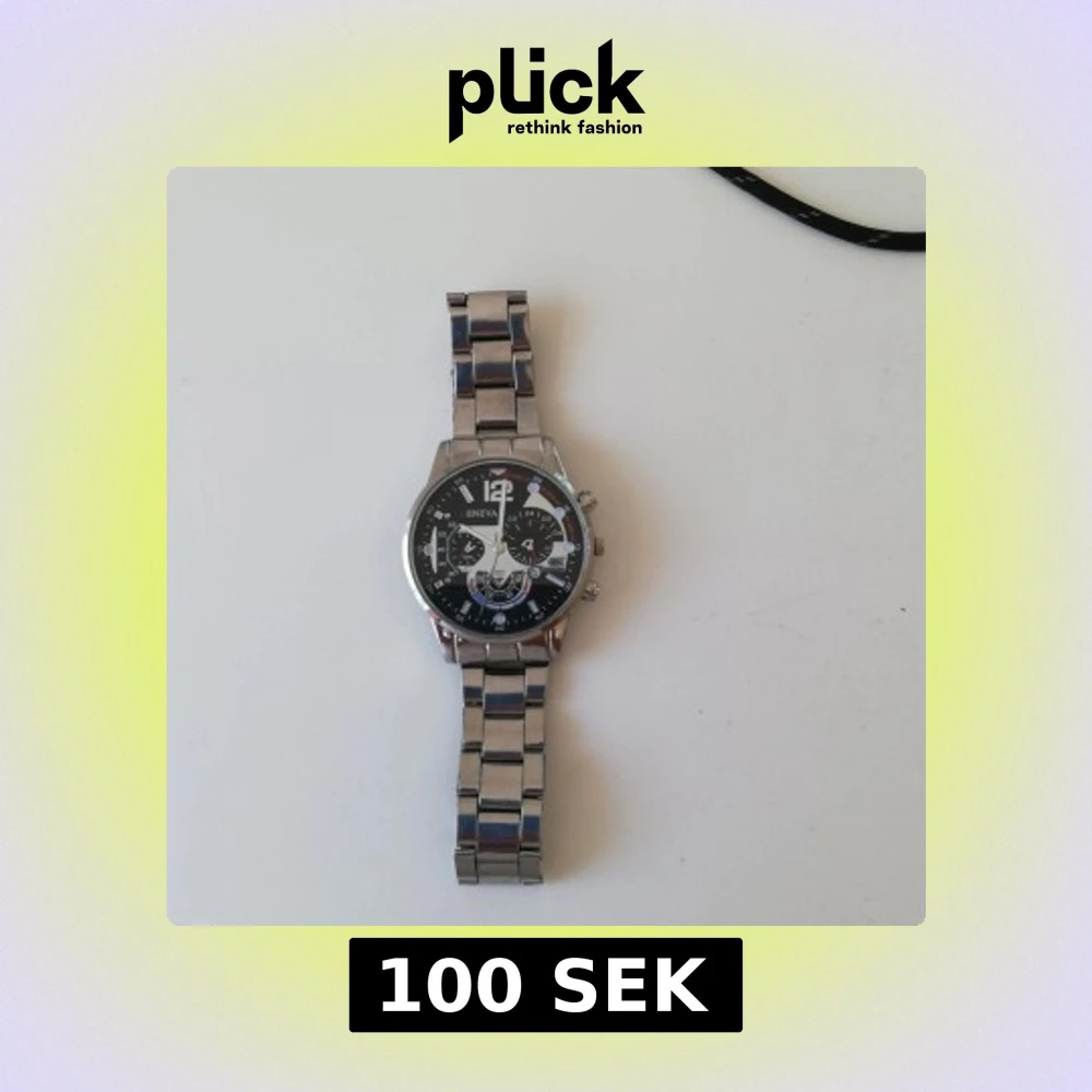 Stilren klocka från Geneva med svart urtavla och flera dekorativa subdials. Klockan har ett armband i silverfärgad metall och tydliga markeringar på urtavlan. Perfekt accessoar för dig som gillar klassisk design.