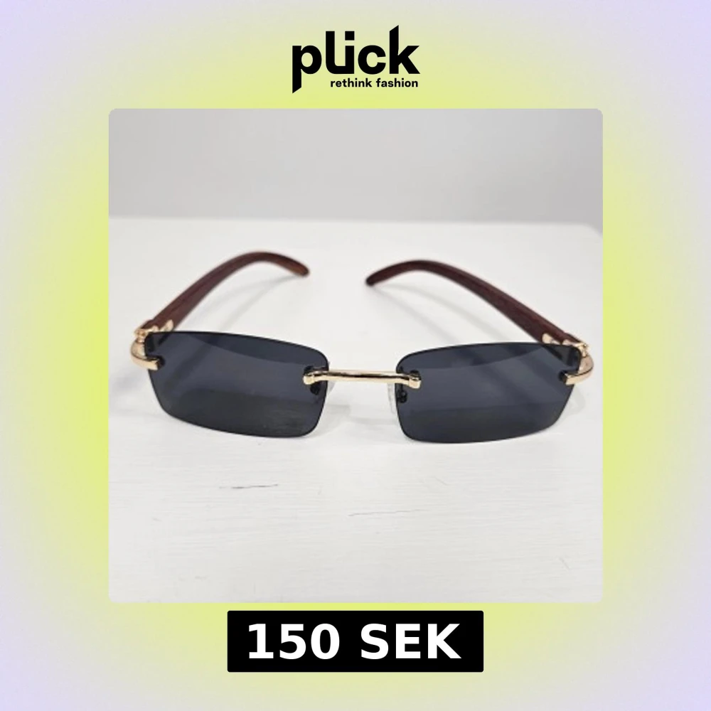Stilrena solglasögon med svarta rektangulära glas och tunna guldfärgade bågar. Skalmarna är bruna och har en elegant minimalistisk design. Perfekta för dig som vill ha en modern och trendig look.