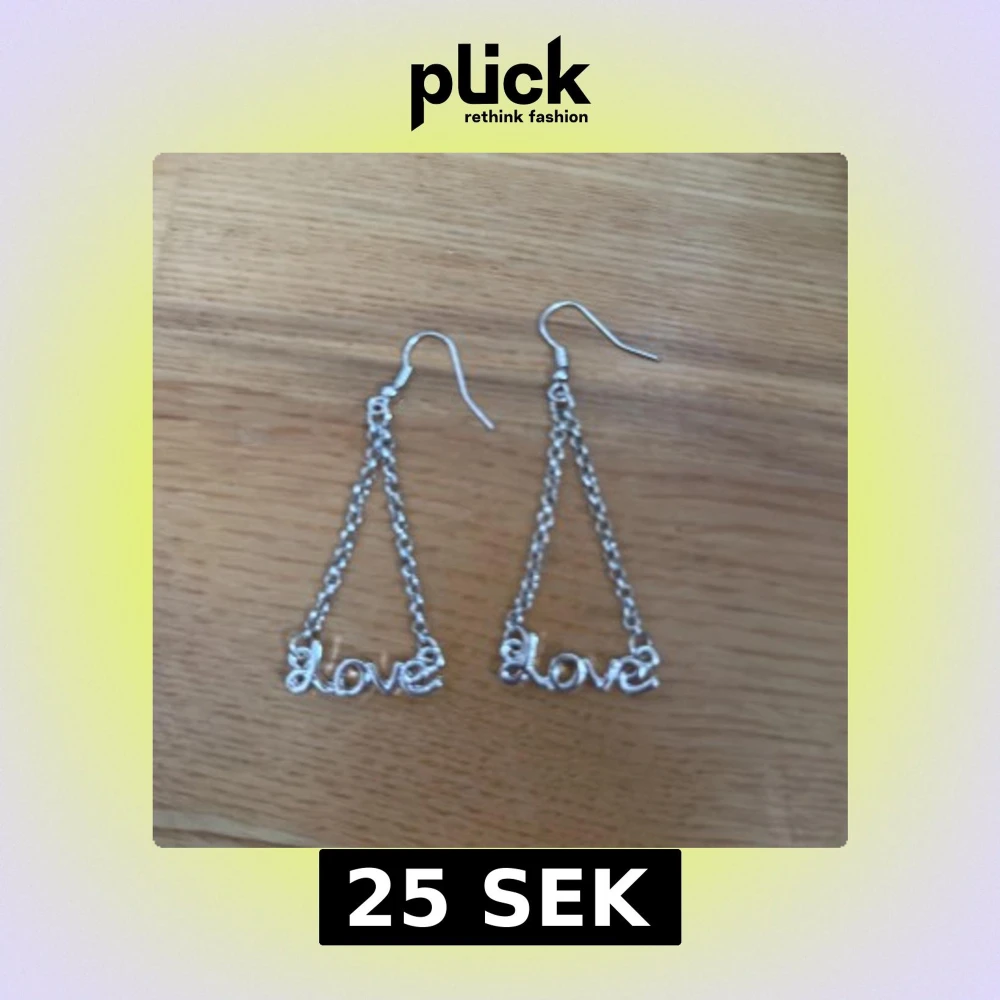 Snygga silvriga örhängen med kedjor som bildar en triangel och texten 'love' längst ner. Perfekta för att ge din look lite extra attityd och kärlek. Hängande modell som syns och sticker ut.