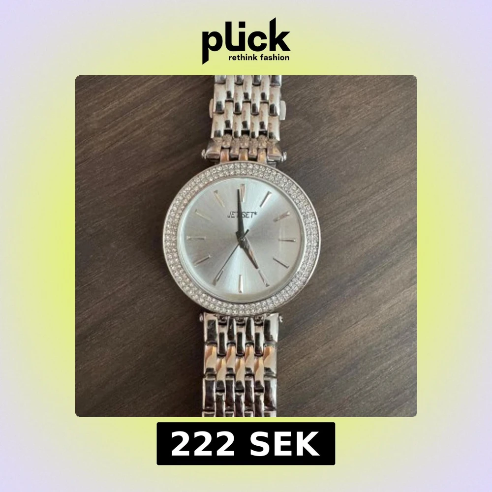 Snygg silverfärgad klocka från Jet Set med glittrande stenar runt urtavlan. Klockan har en stilren design med metallarmband och en tydlig urtavla. Perfekt för att lägga till lite bling till din outfit.