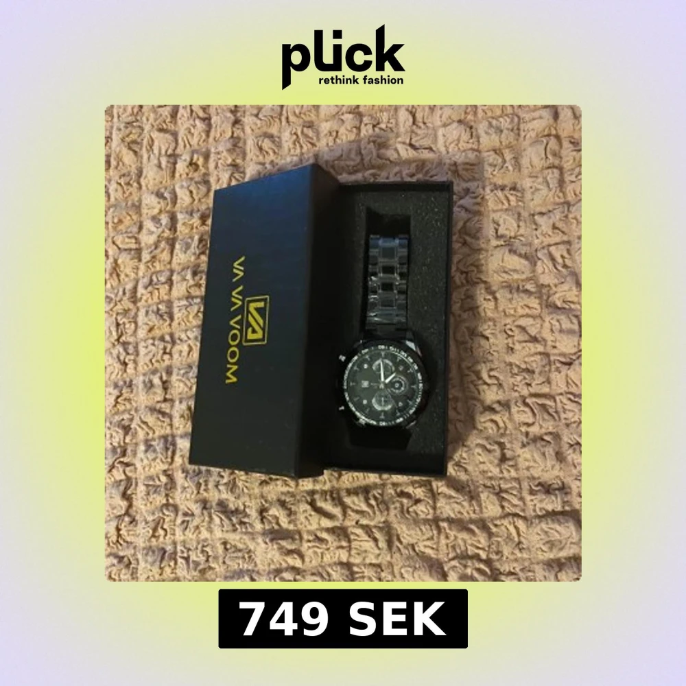Stilren svart klocka från Via Va Voom med metallarmband och rund urtavla. Klockan har flera små urtavlor och tydliga vita detaljer på visarna och siffrorna. Kommer i original ask, perfekt för dig som gillar en klassisk och modern look.