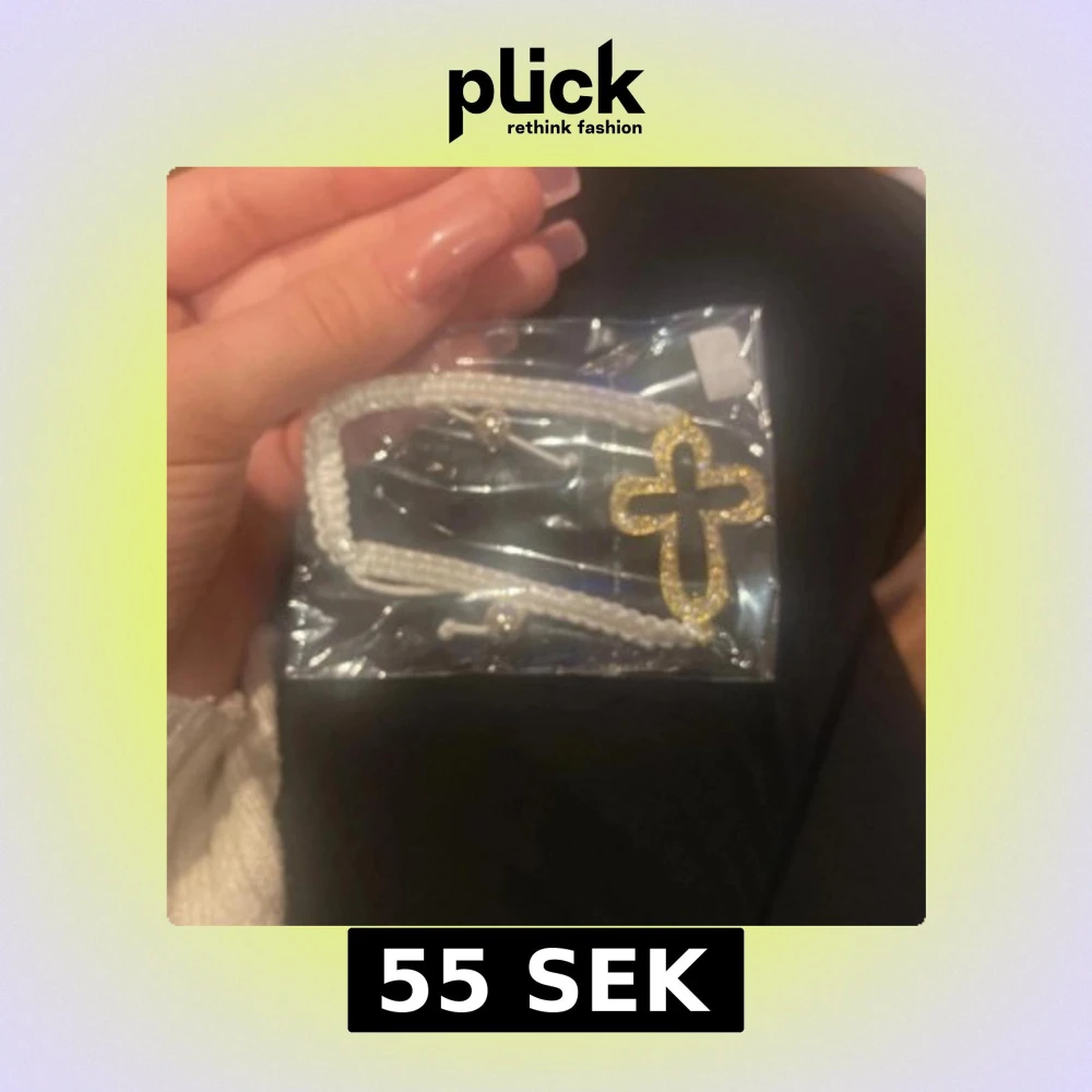 Snyggt armband med flätad vit tråd och justerbar knytning. Armbandet har ett stort guldfärgat kors med glittriga detaljer som ger extra bling. Perfekt accessoar för dig som vill sticka ut med något unikt och trendigt.