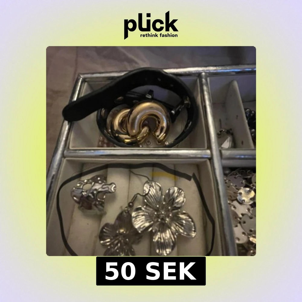 Snygga örhängen i form av stora blommor i silverfärg. Perfekta för att ge en elegant touch till din outfit. Sen har vi en silver ring.