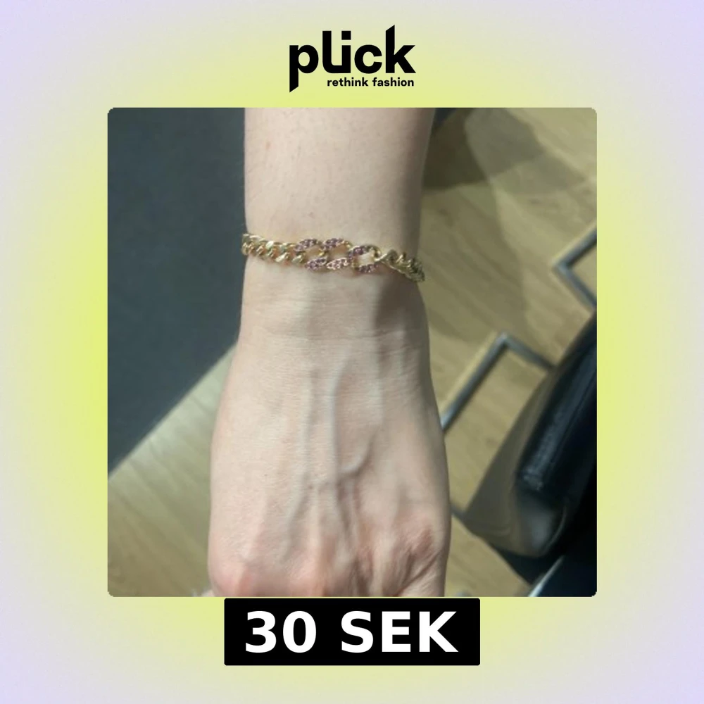 Elegant guldarmband med länkar och vackra rosa stenar. Perfekt för att ge en touch av glamour till din outfit. Armbandet har en säker låsning och en stilren design.