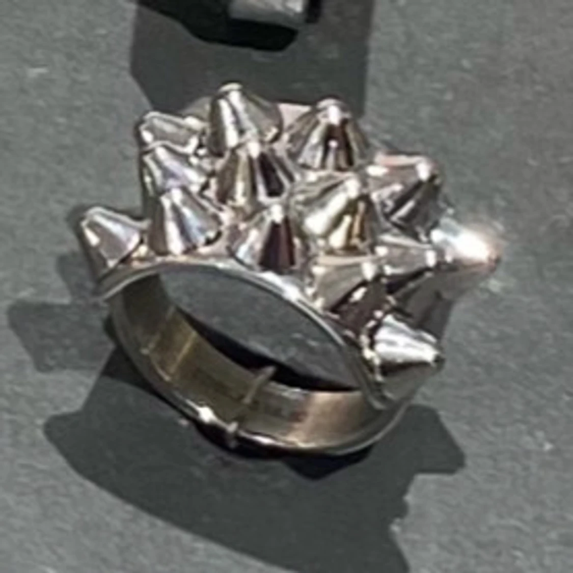 Cool och edgy ring i silverfärg med flera nitar som sticker ut. Perfekt för att ge din outfit en tuffare look. Passar bra till både vardag och speciella tillfällen.