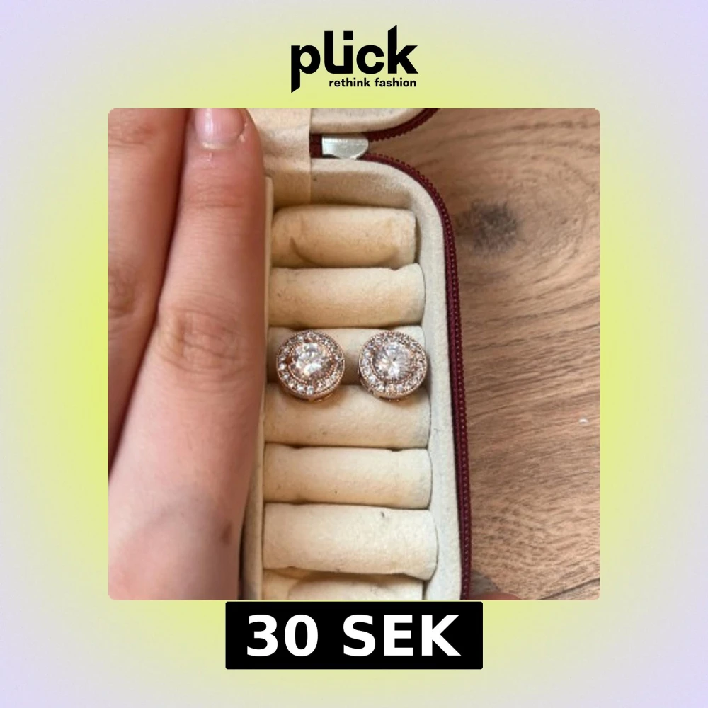 Säljer ett par eleganta glittriga örhängen med stora centrala stenar omgivna av mindre gnistrande stenar. Perfekta för att ge en touch av glamour till din look. Kommer i en praktisk förvaringsask.