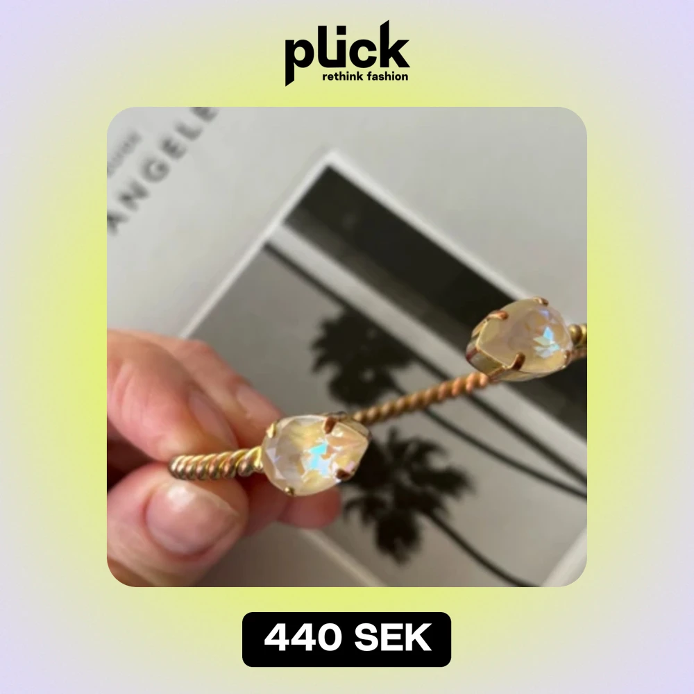 Caroline Svedbom armband  - Supersnyggt armband från Caroline Svedbom i guldton med två stora, glittriga kristaller i transparent färg på varje ände. Kvitto finns ej  Möts upp eller fraktar 🌸